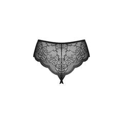 Braguitas negras encantadoras hechas de encaje con un sutil patrón floral y delicadas perlas decoran el frente de encaje transparente: ¡un look fenomenal! entrepierna abierta: material totalmente sexy, suave y elástico (44 % poliamida, 56 % elastano)