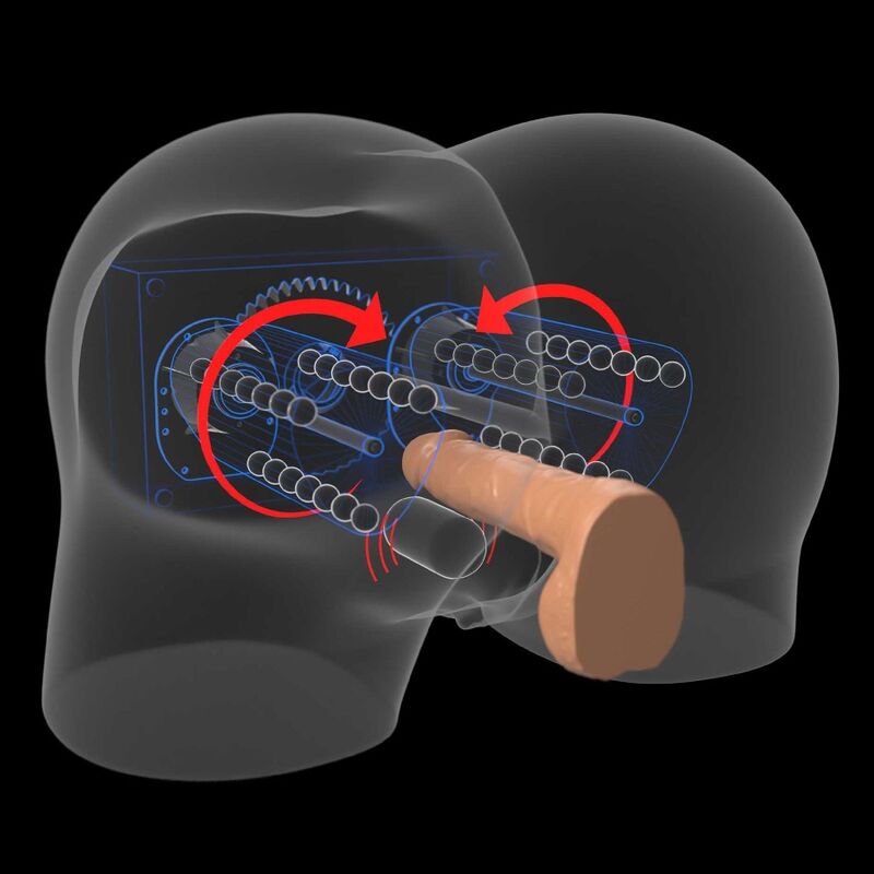 - Motores giratorios duales: ¡Cada mejilla cuenta con un motor giratorio megapotente para que tu pene reciba un masaje desde ambos lados al mismo tiempo! Alimentado por un adaptador de 24 V, cada motor proporciona una potencia de masaje incomparable que dejará tu pene seco.